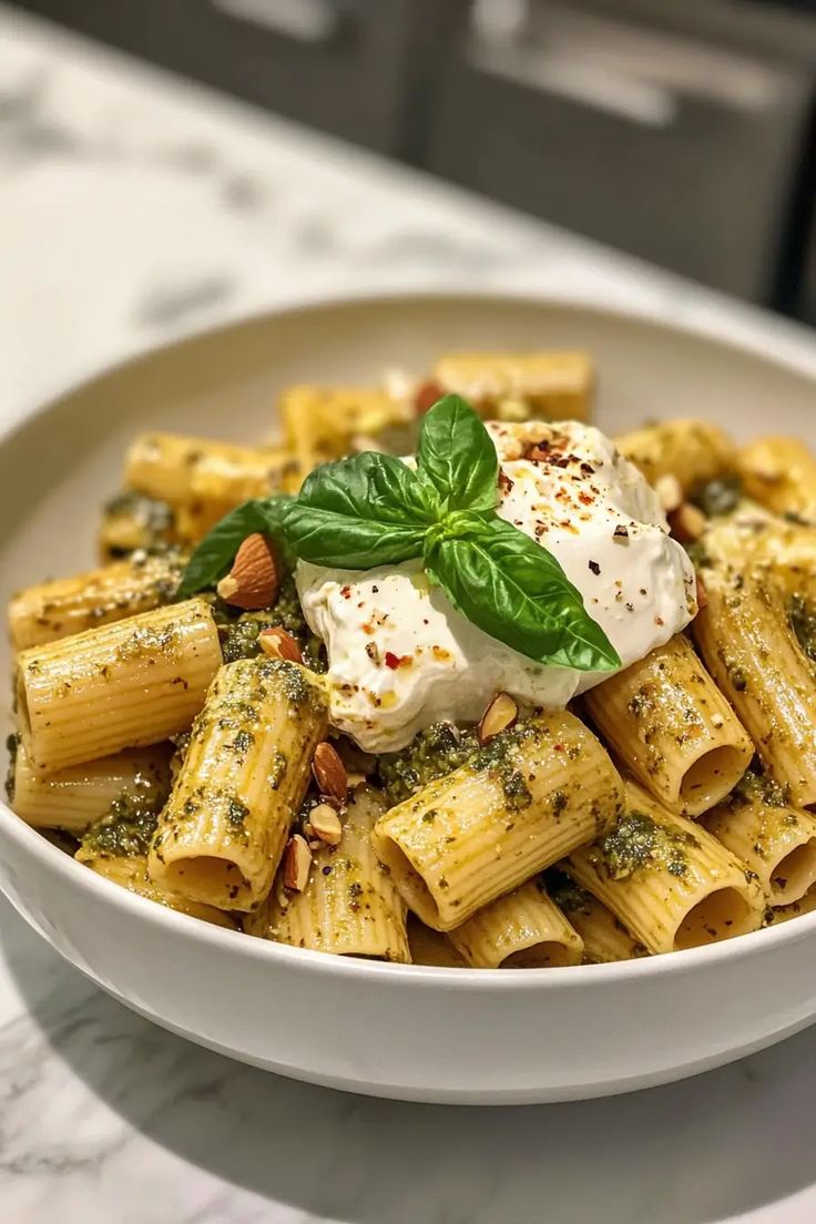 🧀 Ριγκατόνι με burrata & πέστο