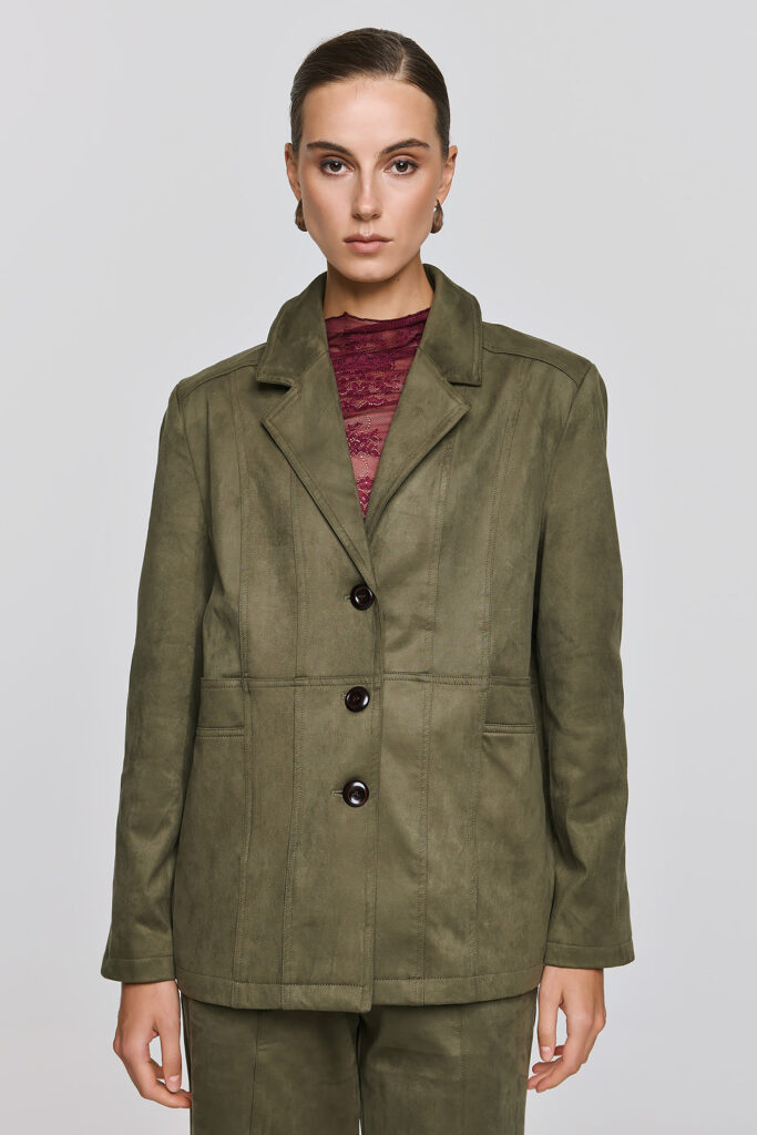 Το suede σακάκι με ραφές από τα Bettina Stores είναι η πιο updated εκδοχή του φθινοπωρινού blazer. Η απαλή υφή του, σε ζεστή χακί απόχρωση, το κάνει ιδανικό για day-to-night εμφανίσεις.