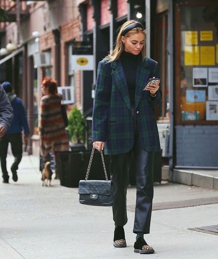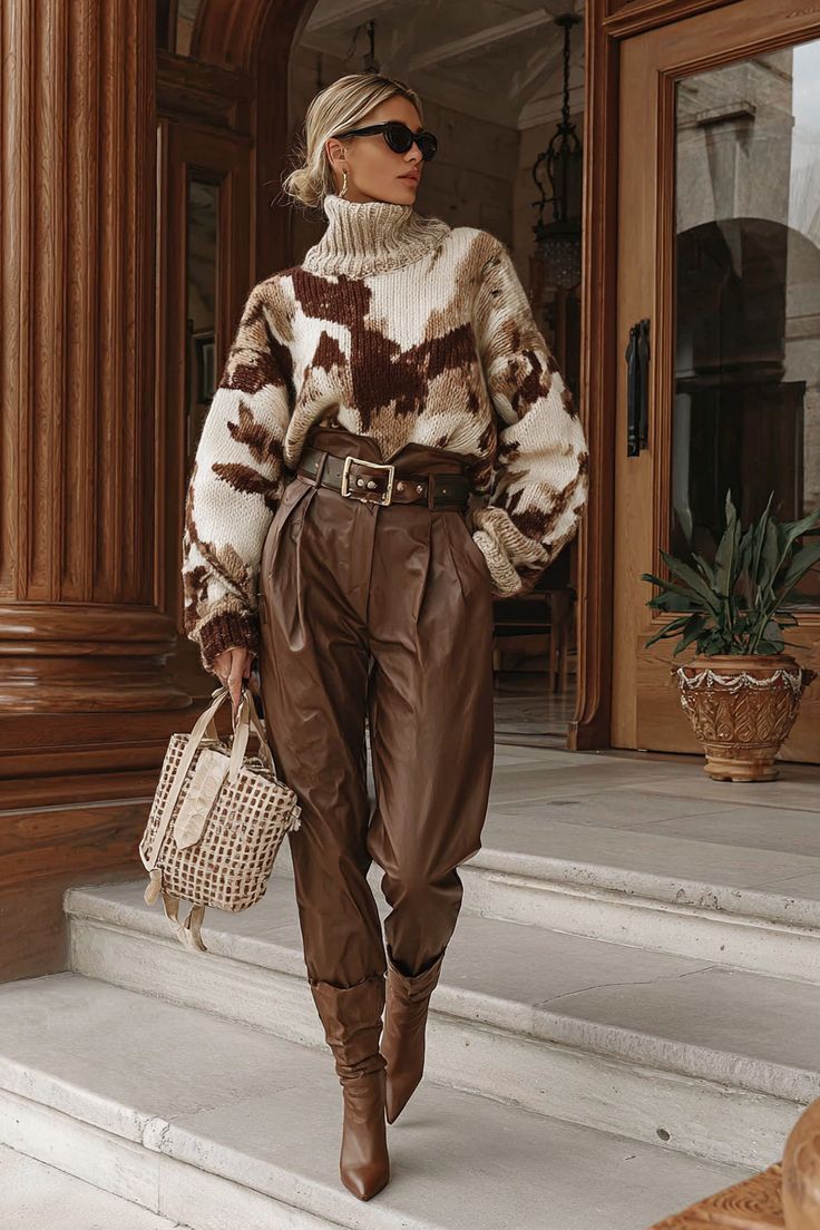 Σε καφέ απόχρωση με μπεζ πλεκτό και loafers, δίνει καθαρό city look.